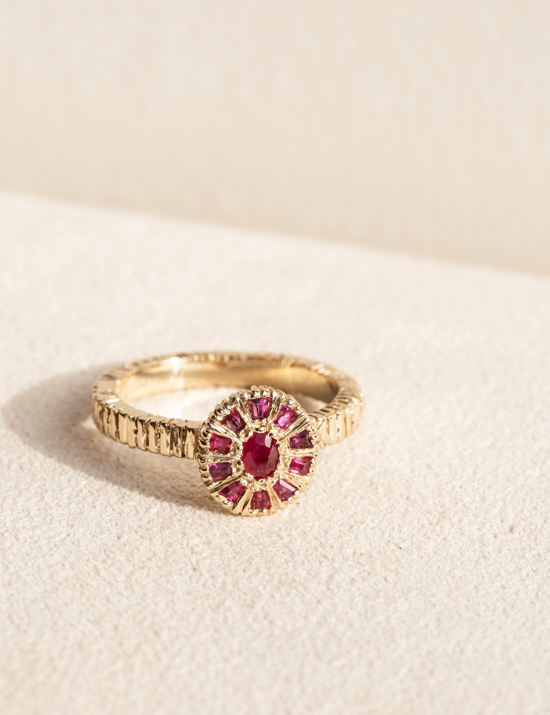 Each stone is carefully hand selected for its unique hue and brilliance. Whether bold or understated, your ring will be thoughtfully designed to reflect your story - in full colour.