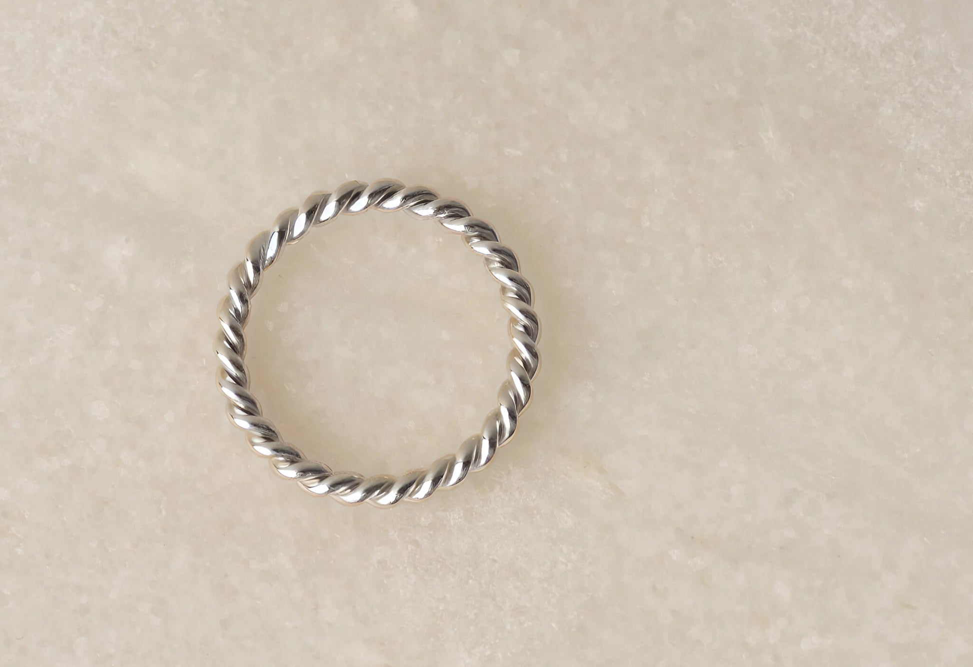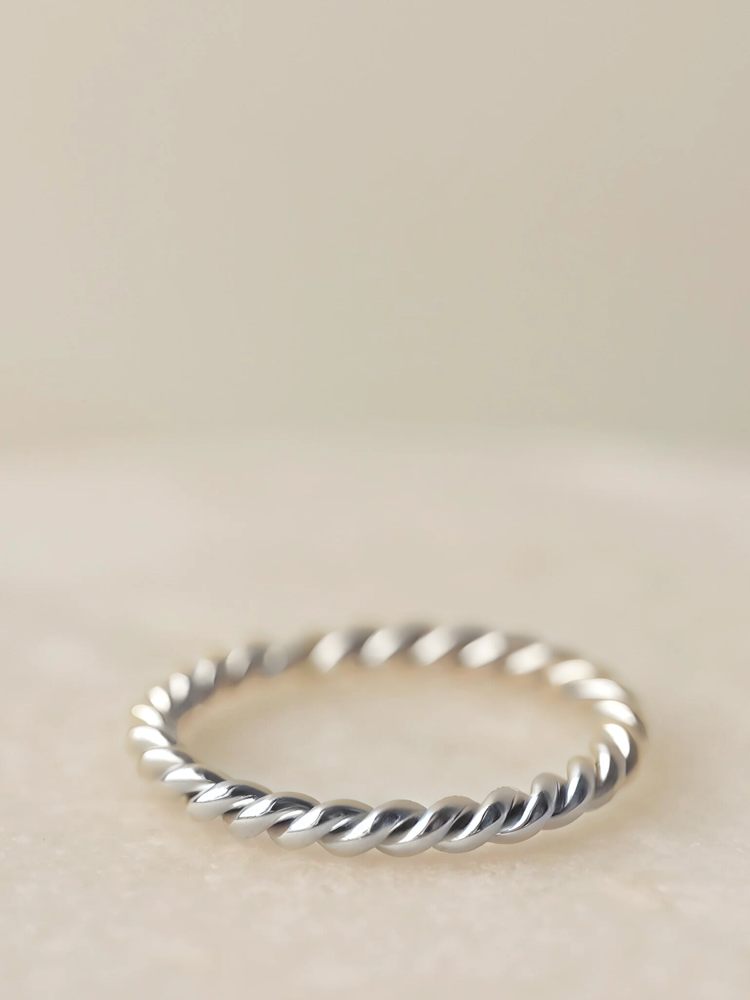 Inspired by the intertwining of lovers, the Corde Band offers a modern twist on a classic design. Perfect for wearing alone or layered with other pieces, this versatile band adds subtle elegance to any look. Crafted in sterling silver, it measures approximately 2.2mm in a smooth, rounded profile.