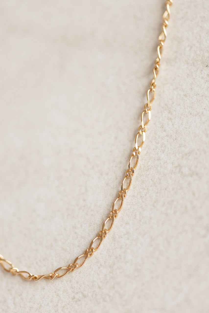 Delicate and timeless, this Diamond Cut Figaro Necklace is crafted in solid 9ct yellow gold and features a refined 1-in-1 link design — one elongated link followed by one smaller chain link — creating a subtle, rhythmic silhouette with a fine diamond-cut finish that catches the light beautifully.